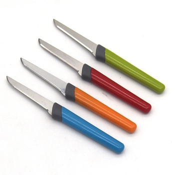 Plastik saplar ve ev meyve bıçağı ile çok fonksiyonlu paslanmaz çelik şeker renkli meyve bıçağı seti